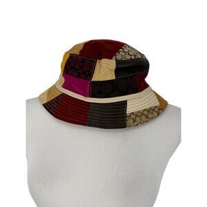 Vintage Coach Patchwork Suede Leather Bucket Hat w/Signature Jacquard Lining Y2K