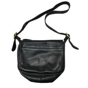 Vintage Coach Patricia Saddle Flap Bag Black Leather Crossbody Messenger 9951