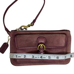 Vintage Coach SOHO Burgundy Purple Suede Buckle Wristlet Mini Bag Signature Lining