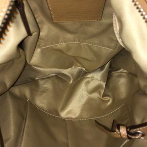14" in x 13 in x 4in . Leather trim with silver hardware. This bag is in excellent condition for being preloved. Very very light wear refer to pics. The vanilla bean beauty has been cleaned and conditioned. This large tote is pristine. Absolutely stunning.