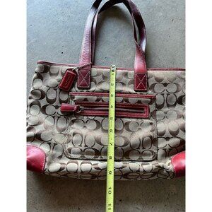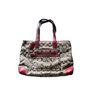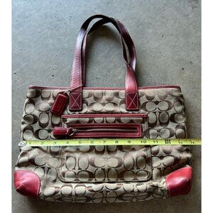 Vintage Coach Signature Brown Classic Canvas & Red Leather Trim Tote Bag 6082