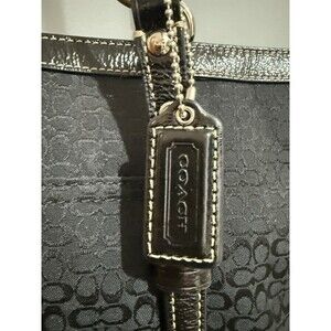 Vintage Coach Signature Gallery Tote Black Jacquard Patent Leather Purse