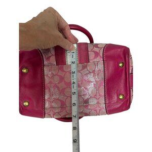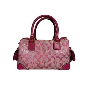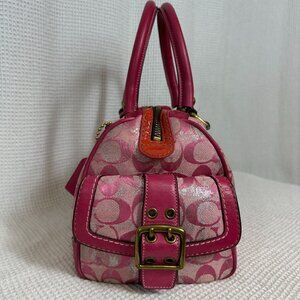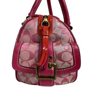 Vintage Coach Signature Pink Metallic Boston Satchel Bag Buckle Pockets Y2K 2186