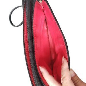 This Coach wallet wristlet has lots of room. There is a front zipper pocket and a back zipper pocket that has lots and lots of pockets inside of it for carts and bills. On the outside there is also a slip pocket. It has a patent leather accents a gold and black and leather Coach button and iconic Coach hang tag in blue. It is large enough to fit a modern cell phone - it fits my Galaxy S9 for example. There is some cracking along the strap and some marks on the interior as shown, but overall, this piece is in very good vintage condition. Get your piece of Y2K fashion history!