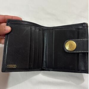 Vintage Coach Signature Stripe Bifold Snap Wallet Black Logo Y2k Leather Cion