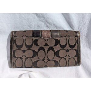 Vintage Coach Signature Stripe Canvas Leather Wallet Brown
