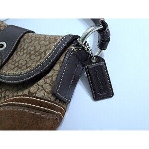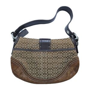 Vintage Coach Soho Brown Signature Canvas Leather Suede Shoulder Bag W/Flap