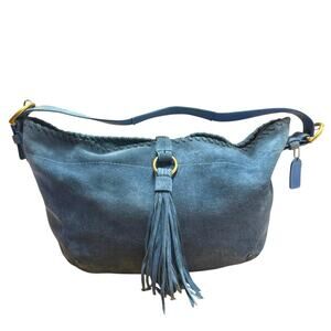 Vintage Coach Soho Fringe Blue Suede Large Hobo Shoulder Bag