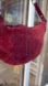 Material: The bag is made of soft, red (bordeaux or burgundy) suede with tonal stitching.