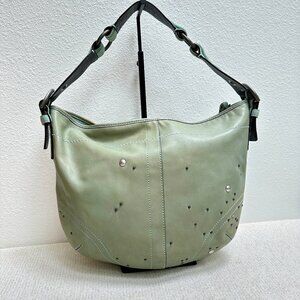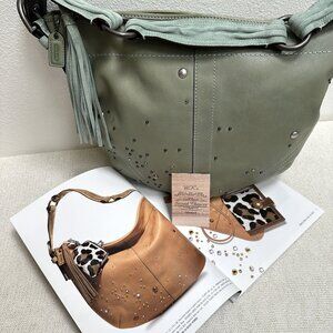 Vintage Coach Soho Large Studded Hobo style 8A28 from 2005, in hard to find Sage Vachetta leather with suede and metallic leather accents. Only one at this time I could find.