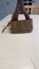 Elegant Coach wristlet with signature pattern. Features brown and tan hues. Stylish leather wrist strap.