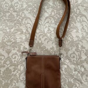 Vintage Coach Swingpack crossbody bag, saddle brown. It has one external pocket, the inside is very clean. Outside has some wear, please see pictures and ask questions. Thick soft leather.