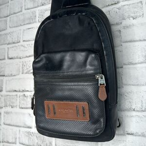 Vintage Coach Terrain Shoulder Pack Sling Backpack Black Leather