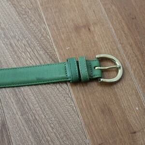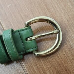 Vintage Coach Cowhide leather belt in green. Gold buckle. I think the style is 8600. Size large, but it does run small in my opinion. Great condition with some light scratches on the hardware as shown.