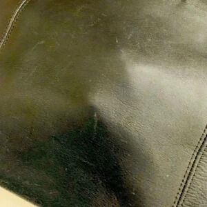 Characteristic sturdy leather, double stitching, brass hardware and a zip top closure are quality traits of this lovely satchel. The bag is for hand or wrist handling as the hand drop for the handle is 5″. It measures 8″ height 12″ width and 5″ depth.