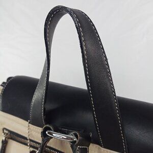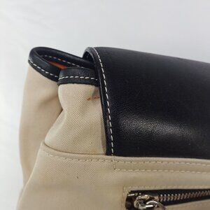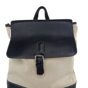 Vintage Coach Womens Backpack Bag Beige Black Canvas Leather Daypack Classic