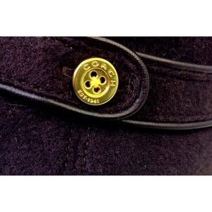 This Vintage Coach Womens Bucket Hat in brown wool blend is a stylish and classic accessory for women. With a solid pattern and accent details like buttons and the Coach logo, this medium-sized hat is perfect for casual occasions in the winter, fall, or spring. The wool blend material and lining provide warmth and comfort, making it a practical and fashionable choice for colder weather. The timeless design and designer brand add a touch of sophistication to any outfit, making this bucket hat a versatile addition to any wardrobe.