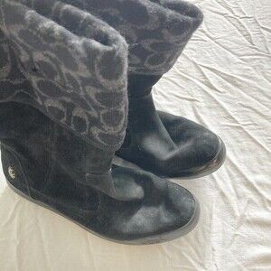 - Vintage Coach Women's Size 8.5 Tatum Black Logo Sock Cuff Boots Leather Wool