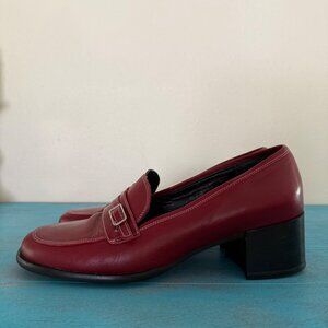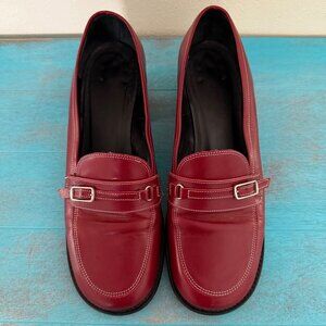 Vintage Coach Y2k Red Brick Leather Block Heeled Loafers Size 9.5
