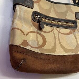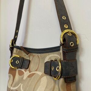 Vintage Coach Signature C (#3577) brown and tan leather suede shoulder bag with gold hardware