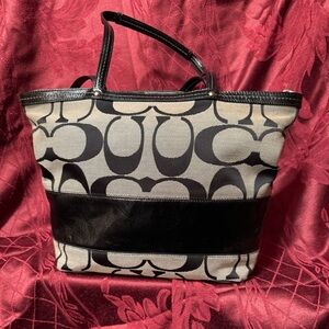 This stylish shoulder bag from Coach is an ideal accessory for any fashion-conscious woman. Crafted from a blend of high-quality canvas and leather materials, it’s designed to withstand the demands of daily use while maintaining its impeccable appearance. Its sleek black exterior complements any outfit, making it a versatile addition to your wardrobe. Whether you’re headed to work or out on the town, this Coach purse elevates your look. With ample space for your phone, wallet, and makeup, you can confidently carry your essentials without worrying about leaving anything behind. Its timeless design and robust construction ensure that it’s a must-have for any woman who values both style and functionality.