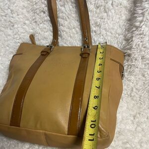 Vintage Coach Leatherware Est. 1941 tan shoulder bag with brown straps and trims. Two side pockets with turn lock closure, top zipper the inside lining has a side zipper two side pockets. Pre owned in good used condition normal wear see all pictures any questions please message. B11