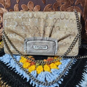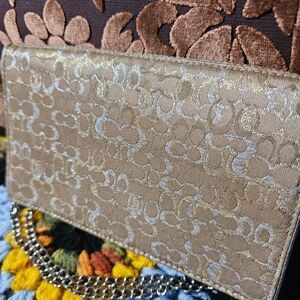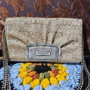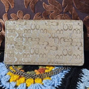 Vintage Coach Y2K Lurex Signature Optic Art Clutch Bag Purse in Metallic Gold