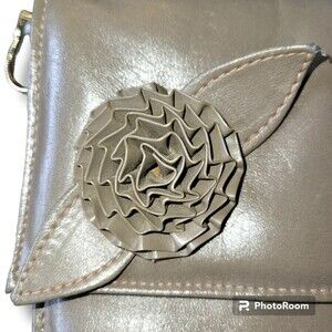 Vintage Coastal Cowgirl Y2K Maryann Rosenfeld Tan Brown Flower Gold Chain Bag