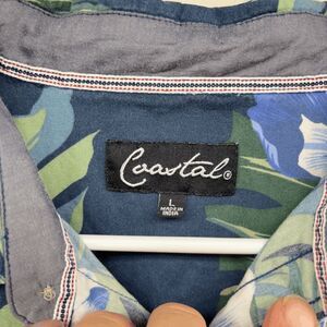 Vintage Coastal Hawaiian Camp Shirt Large Aloha Floral Blue Button Up Loose