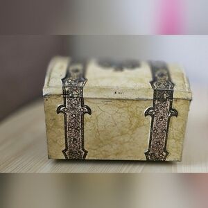 Vintage Coat Of Arms Embossed Design Treasure Chest Inspired Hinged Lid Tin Box