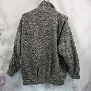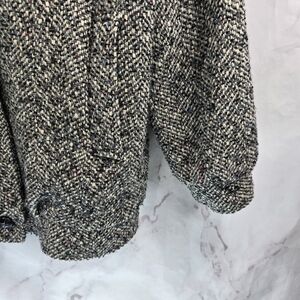 Vintage Coat Womens 1X Gray Wool Tweed Words 80s 90s Pleated Slouchy Korea
