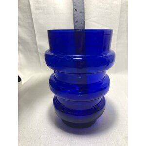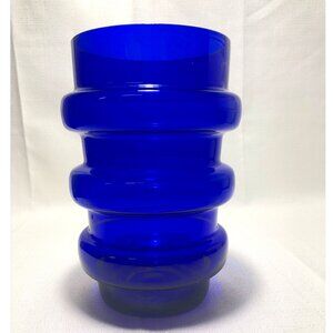 Vintage Cobalt Blue Art Glass MCM Vase With Ribbed Design