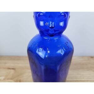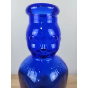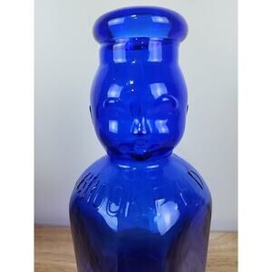 Vintage Cobalt Blue Baby Top BROOKFIELD Baby Face - Quart Milk Bottle