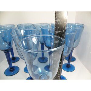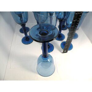 Vintage Cobalt Blue Blown Glass Goblets Stemware Wine Water Glasses Elegant Des