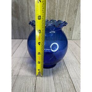 Vintage Cobalt Blue Bubble Glass Vase With Ruffled Collar 5.5" Tall Round Decor