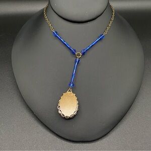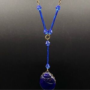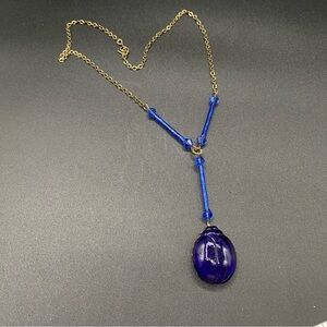 Vintage Cobalt Blue Czech Glass Scarab Pendant Necklace