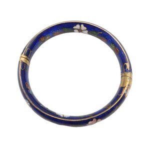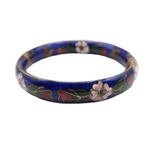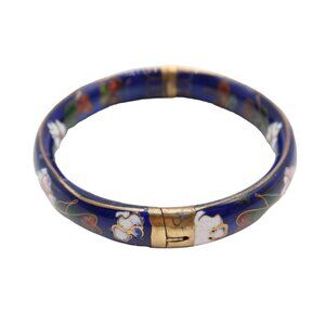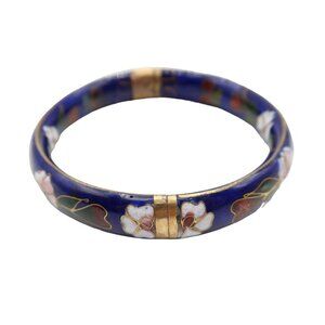 Vintage Cobalt Blue & Floral Cloisonne Enamel Bracelet Clamper Bracelet Unsigned