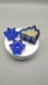 Vintage Lot of 3 Cobalt Blue Glass Celestial Star Candle Holders Pair, with Fir Tree Candle. Likely from the 1980s or 90s.