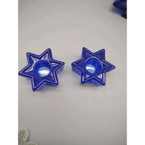 Vintage Cobalt Blue Glass Celestial Star Candle Holders, Fir Tree Candle, READ
