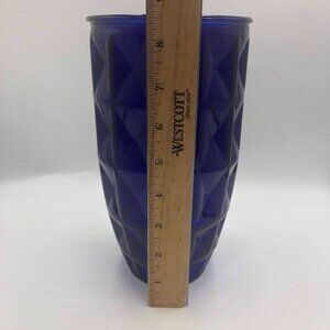 Vintage Cobalt Blue Glass Flower Large Vase Indoor Tabletop Décor Diamond Pattern. Vase is vintage pre-owned. Please see all photos for visible condition. No original box. No noticeable chips/cracks. There is a minor scratch on the inside that can be seen on the outside somewhat - please see photo. My camera couldn't pick up the scratch on the outside but minor. May contain some minor residue inside from last plant. Approximately 8.5 inches x 4.75 inches top x 3 inches bottom. Actual brand/age unknown but was informed is vintage due to the length of time owned. Stunning beautiful vase!