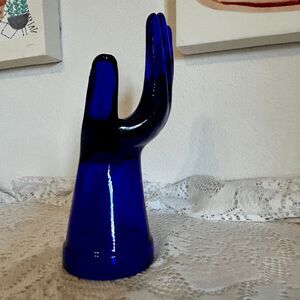 Vintage Cobalt Blue Glass Hand Ring Display - 8" Jewelry Holder