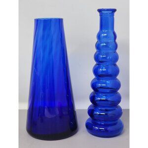 Vintage Cobalt Blue Glass Vase Set Decorative Ribbed & Cone Shapes Home Décor