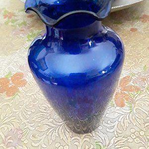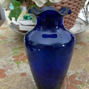 Vintage Cobalt Blue Glass Vase with Ruffled Rim