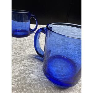 Vintage Cobalt Blue Heavy Glass Mug Coffee Teacup Made in USA set of 2