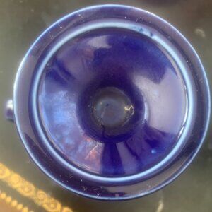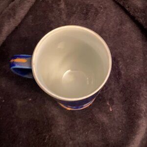 Vintage Cobalt Blue Japanese floral and wagon print tea/coffee cup. Ceramic, 5" tall