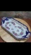 Vintage Cobalt Blue Rim & Pink Rose Porcelain Rectangular Reticulated Scalloped Dish Decorative Serving Tray