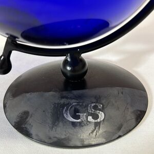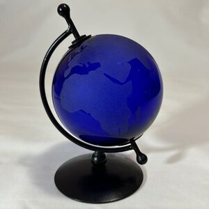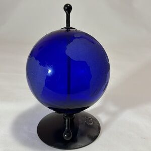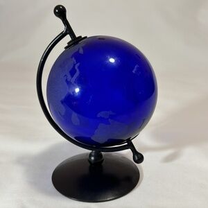Vintage Cobalt Blue World Globe Map. No chips or cracks.. it does have initial at the base but that can be removed with a bit of paint. Easy fix.. Please see pictures for item description.