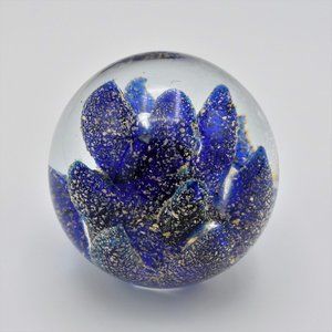 Vintage Cobalt Blue and Gold Flecks Paperweight