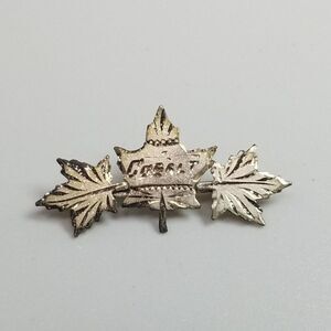 Vintage Cobalt Canada Maple Leaf Brooch, Engraved Etched Silver Tone, Estate