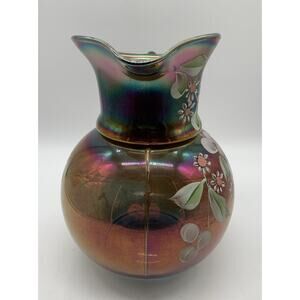Vintage Cobalt Carnival Glass Cherry Blossom Water Pitcher Irredescent Read!!